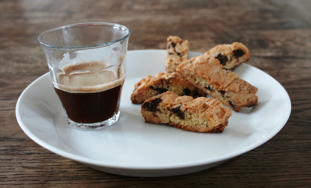 Snijd de cantuccini’s in schuine stukjes. Leg de koekjes weer op de bakplaat en bak ze nog 5 tot 10 minuten in de oven.