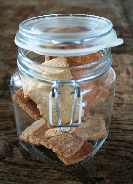 Bestuif het aanrecht met bloem en rol het deeg uit tot een rechthoekige plak van circa 1 centimeter dik. Snijd de randjes eraf en snijd de rechthoek in koekjes van circa 3 bij 4 centimeter. Leg de koekjes op een met bakpapier beklede bakplaat en bak ze in de oven in circa 20 minuten gaar.