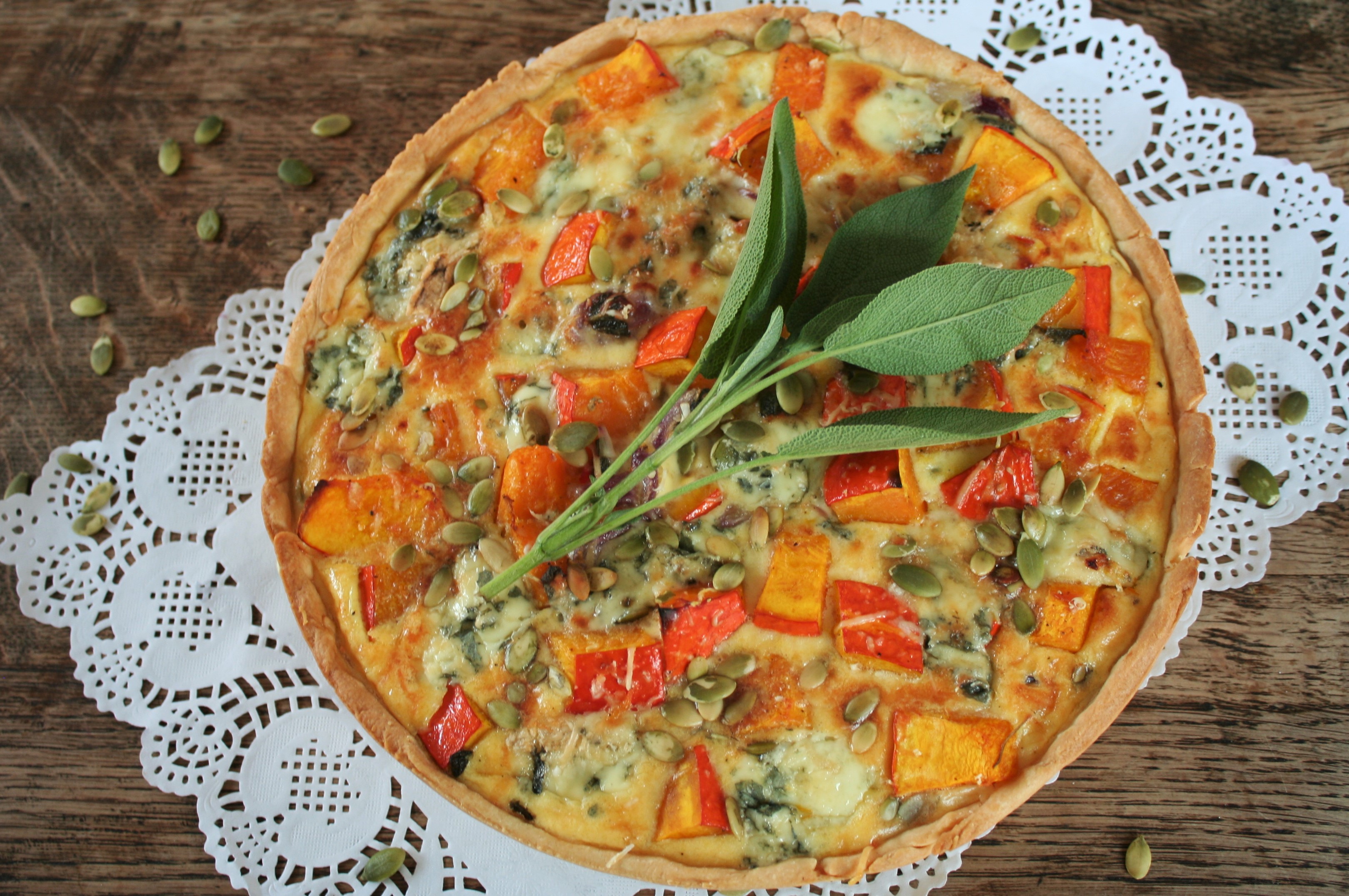 Een gedachte over “Hartige taart met pompoen, salie en blauwe kaas