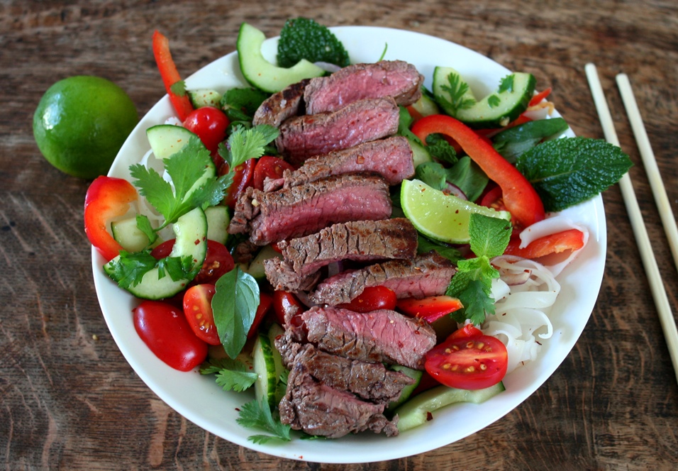 Een perfecte salade voor een warme zomerse dag als vandaag. Flink veel vitaminen, en dat proef je zodra de eerste hap binnen is! Verse kruiden, knapperige groenten en een lekker biefstukje… Deze Thaise salade doet me een beetje denken aan deze fresh springroll’s.