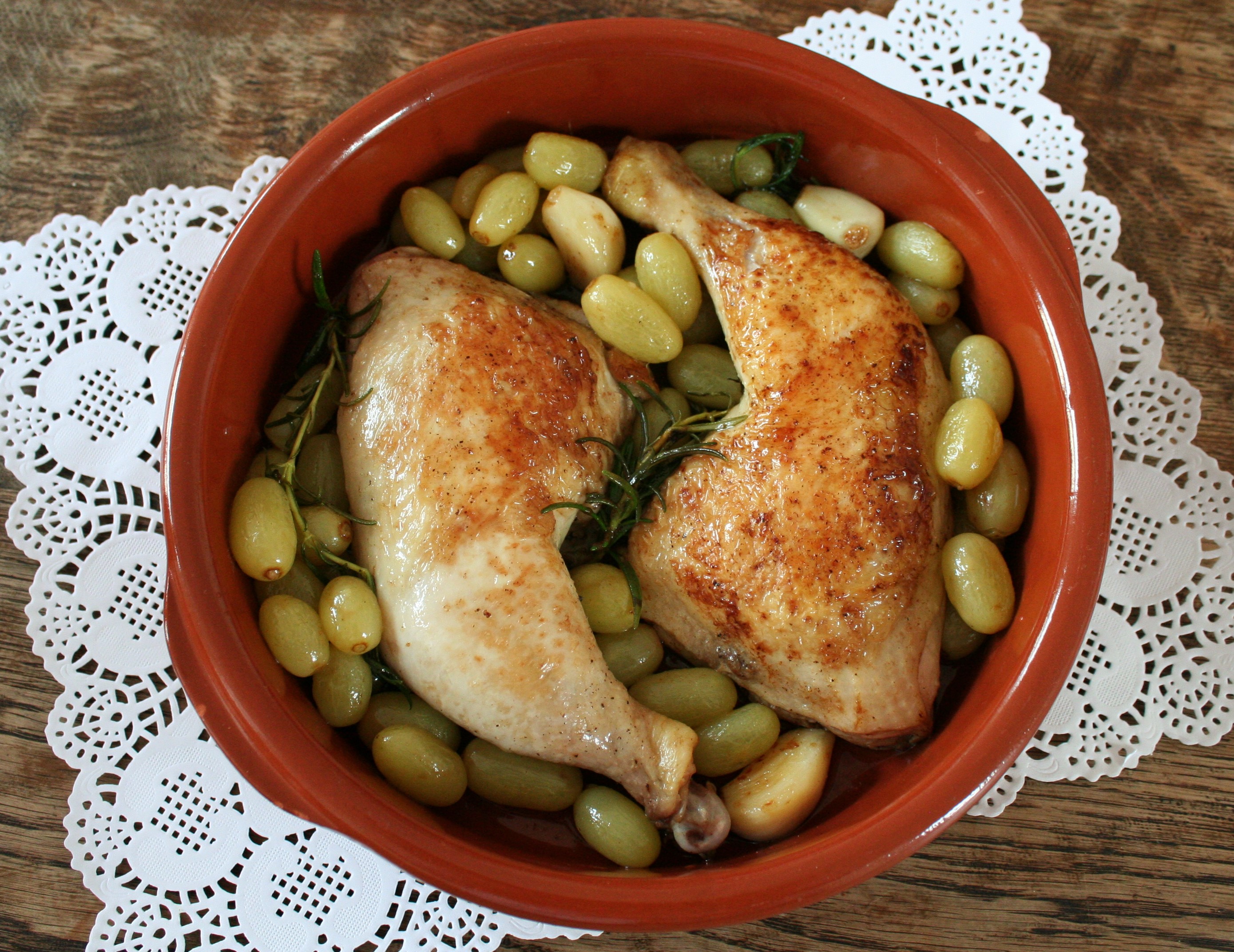 Mooi plaatje hè en het smaakt ook nog eens ontzettend lekker. Ik ben altijd een beetje voorzichtig met fruit in warme gerechten omdat het te overheersend kan zijn maar dat viel me met dit gerecht alleszins mee. Investeer in biologische kippenpoten, die zijn zo veel smaakvoller dan de plofexemplaren. Het recept komt uit het boek de Smaken van Italië. Een prachtig boek van Claudia Roden waarin elk hoofdstuk de culinaire cultuur van een Italiaanse provincie beschrijft gevolgd door recepten uit die streek. Zowel het boek als deze kip zijn een aanrader! Lees verder