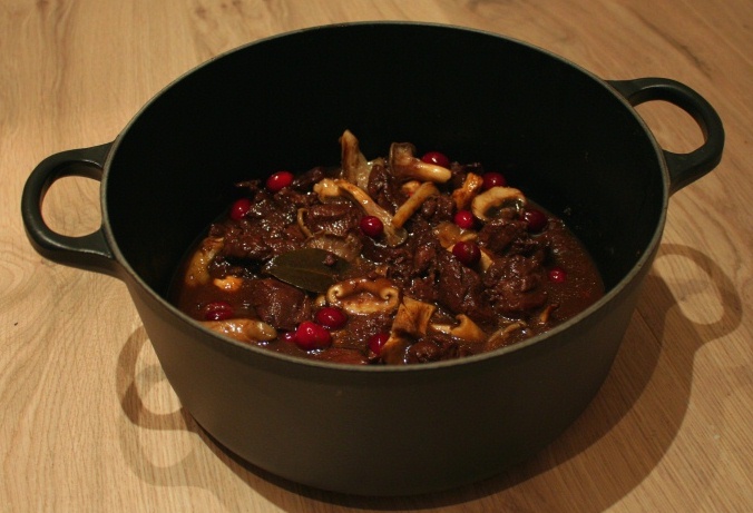 Ik heb deze stoof ruim 3 uur op het vuur laten staan. Hertenvlees is van zichzelf natuurlijk al mals en na 3 uur stoven was het boterzacht! Wij aten deze stoofpot met aardappel-knolselderijpuree, spruitjes en cranberrycompote. Lees verder
