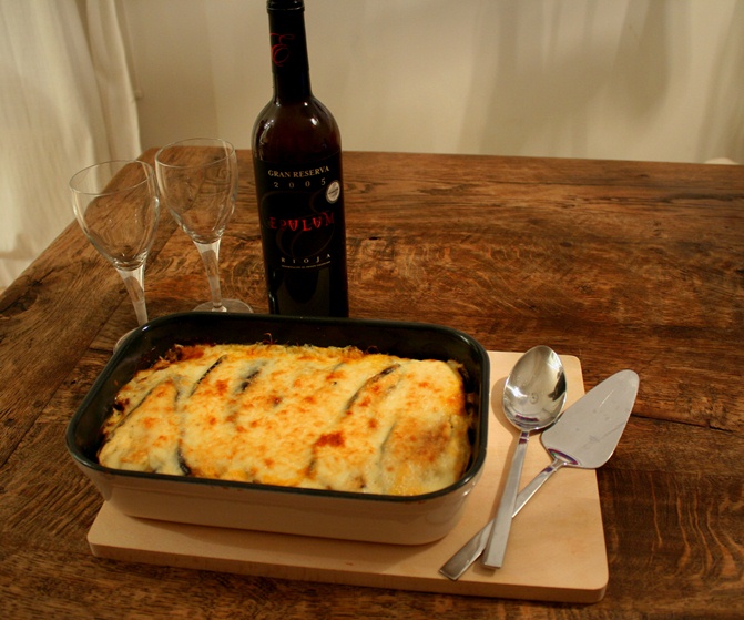 Eén keertje ben ik in Griekenland geweest, alweer zo’n 8 jaar geleden maar het heerlijke eten herinner ik me als de dag van gisteren. We zaten in een schattig dorpje met veel familierestaurantjes waar ieder gezinslid zijn taak had. Moussaka is een van mijn favoriete Griekse gerechten. De kruidige saus is voortreffelijk. Je kunt deze moussaka prima een dag van tevoren maken en na een lange werkdag in de oven schuiven. Maak de bechamelsaus wel pas op de dag zelf. Lekker met deze Griekse salade. Voor een nog voedzamere Moussaka kun je ook aardappelschijfjes toevoegen aan deze ovenschotel. Kook dan 3 flinke vastkokende aardappels zo’n 15 minuten, snijd ze in plakjes en voeg ze als extra laagje toe.
