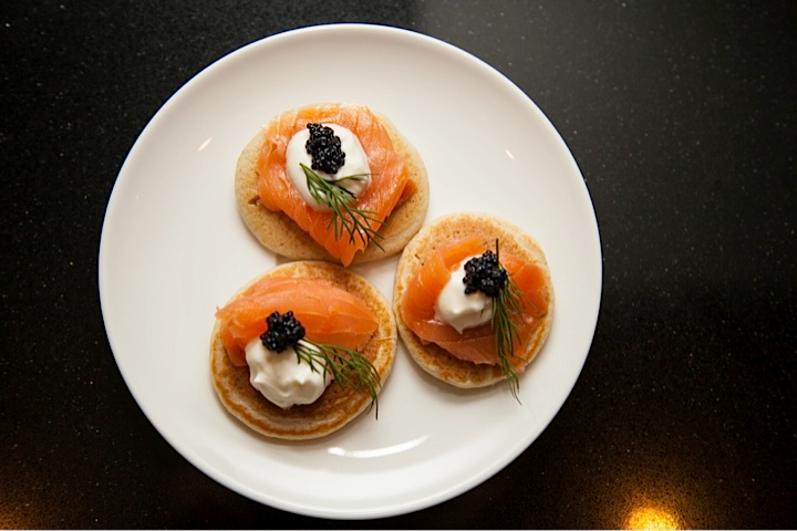 Je kunt de blini´s als amuse of als hapje serveren of maak er een paar per persoon en je hebt een leuk voorgerecht. Maak ze iets groter dan een poffertje. Houd je meer van Italiaans, probeer dan ook eens deze pestoflensjes met gerookte zalm. De mooie foto is gemaakt door fotograaf Léon Beek die bij mij aan tafel zat. Lees verder