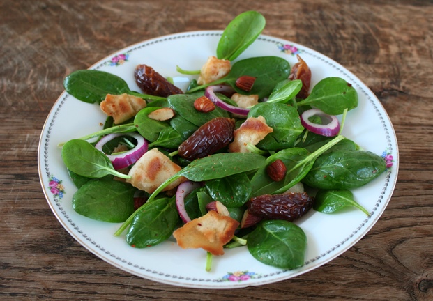 Ottolenghi’s salade van jonge spinazie met dadels en amandelen