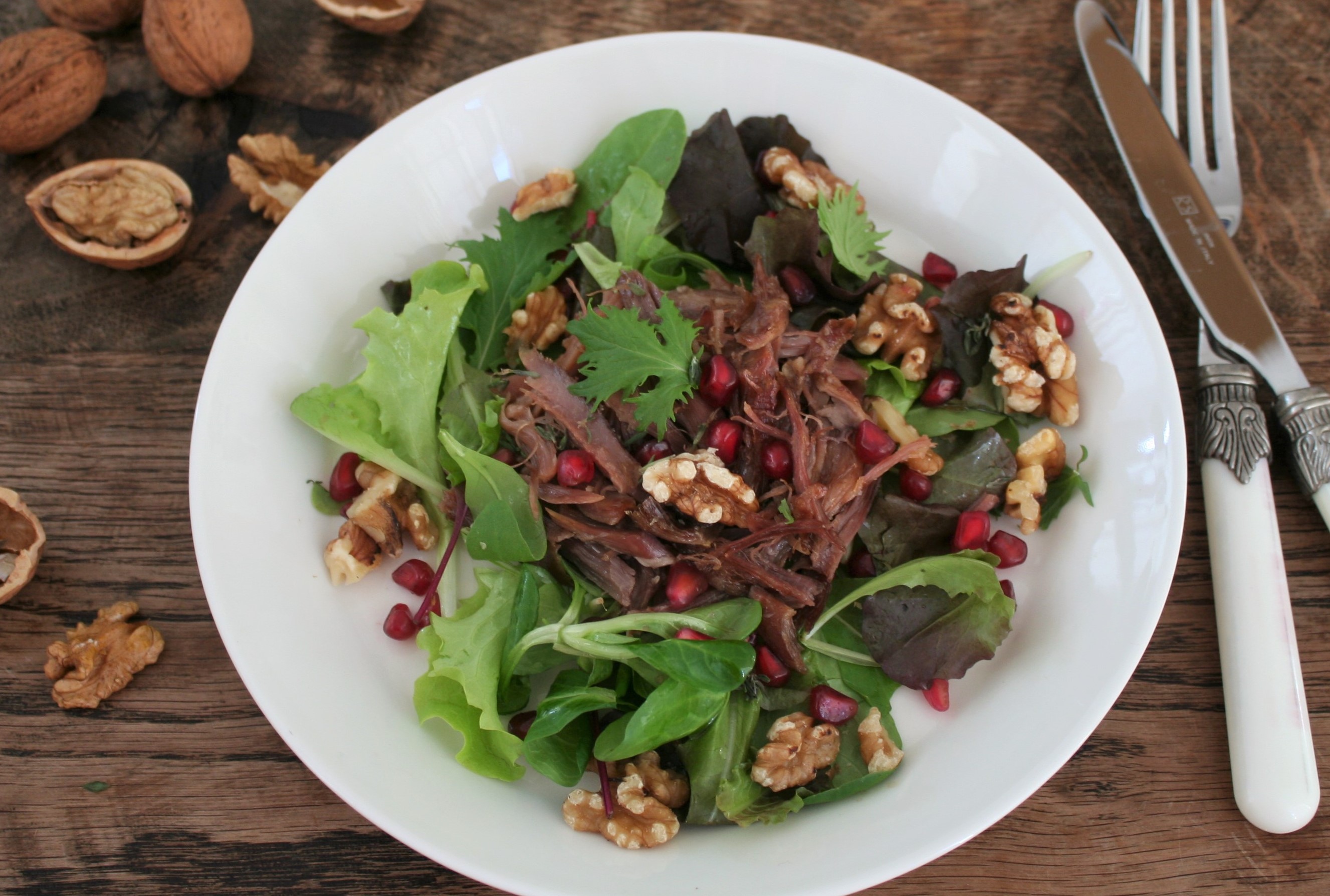Ik maakte nu een lauwwarme salade, lekker met zoetzure granaatappelpitten, knapperige walnoten en een friszure dressing. Succes! Lees verder