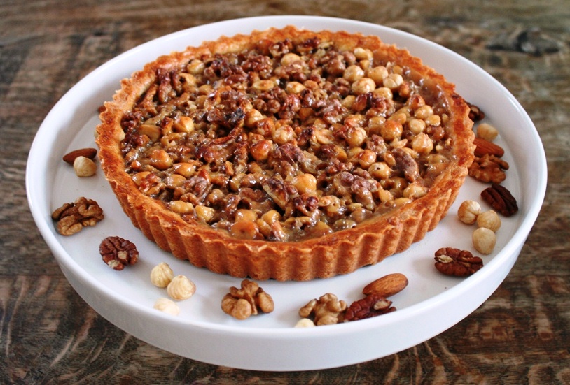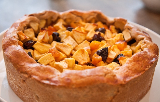 Appeltaart met walnoten, abrikozen en gember