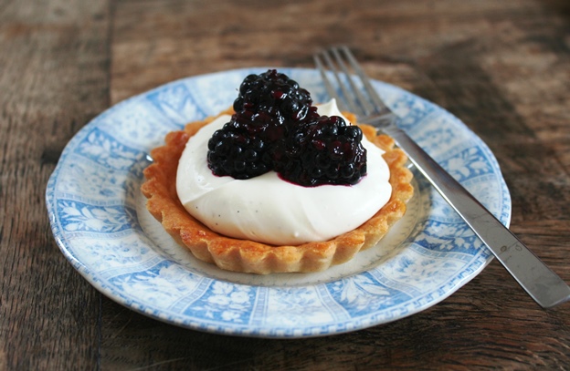 Hele mooie dikke bramen vond ik gister, ik had wat deeg over van de Zwiterse notentaart dus freubelde deze bramentaartjes in elkaar, very easy! Maak ze bij voorkeur met een vanillestokje i.p.v. vanille extract. Lees verder